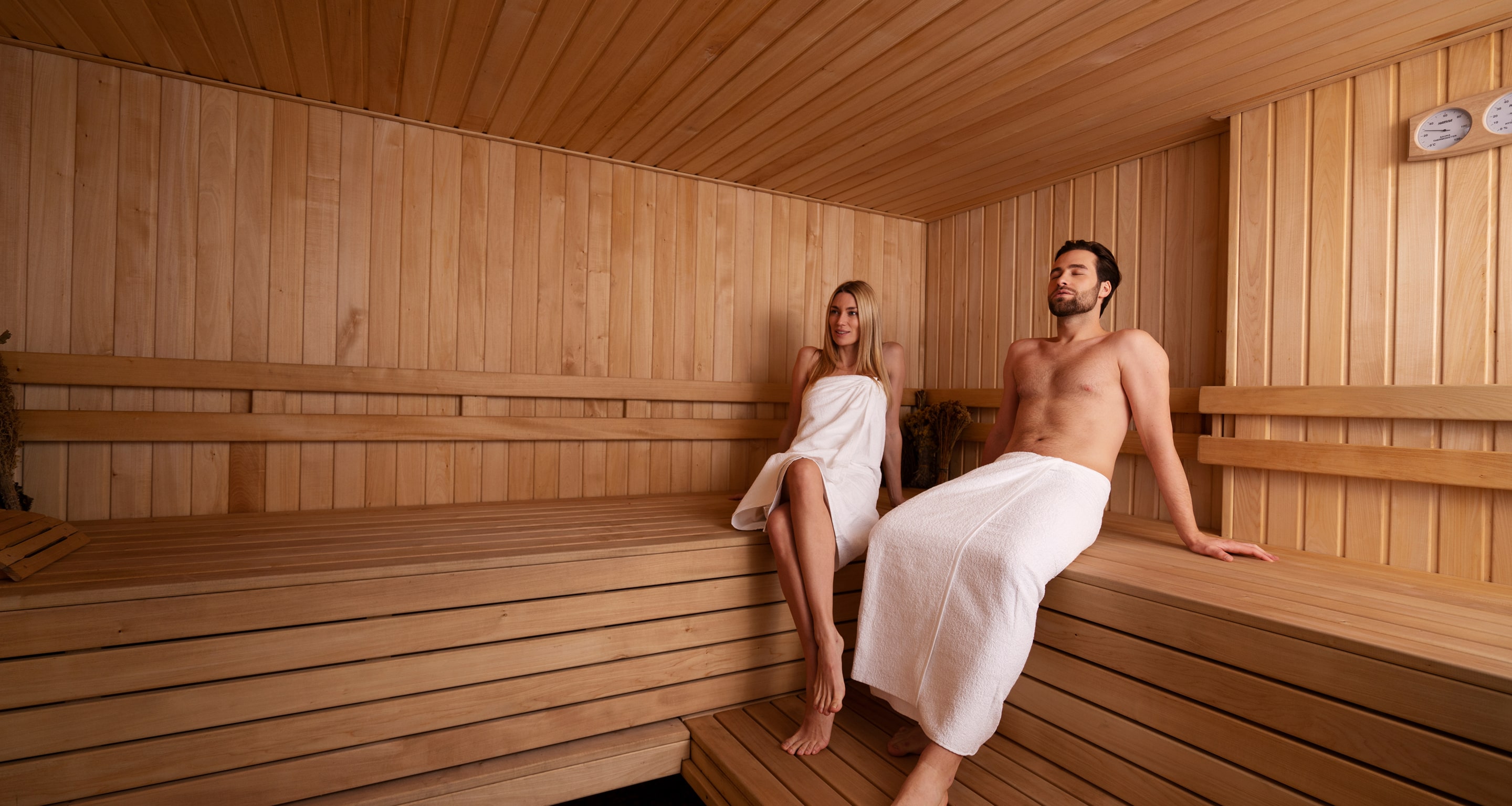 На каждом сеансе предоставляются два полотенца. Одно используйте, чтобы сидеть на нём в сауне, а другим вытирайтесь после сеанса.